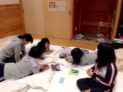 夜は高校生5人と相部屋(笑)おもむろに宿題はじめたけど、10分も続かず。最後はずっと男の子の話題でした.....いたって普通の高校生です!